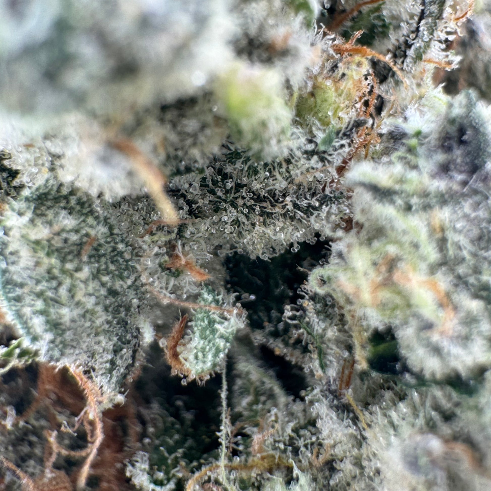 Block Party is a bold, balanced hybrid cultivated by Frosty Moose Farm, offering a vibrant and expressive aromatic profile. Bright citrus and soft berry notes meet subtle gas and light earth, creating contrast and structure throughout. Its dense, trichome-rich buds showcase deep green coloration with flashes of purple.
