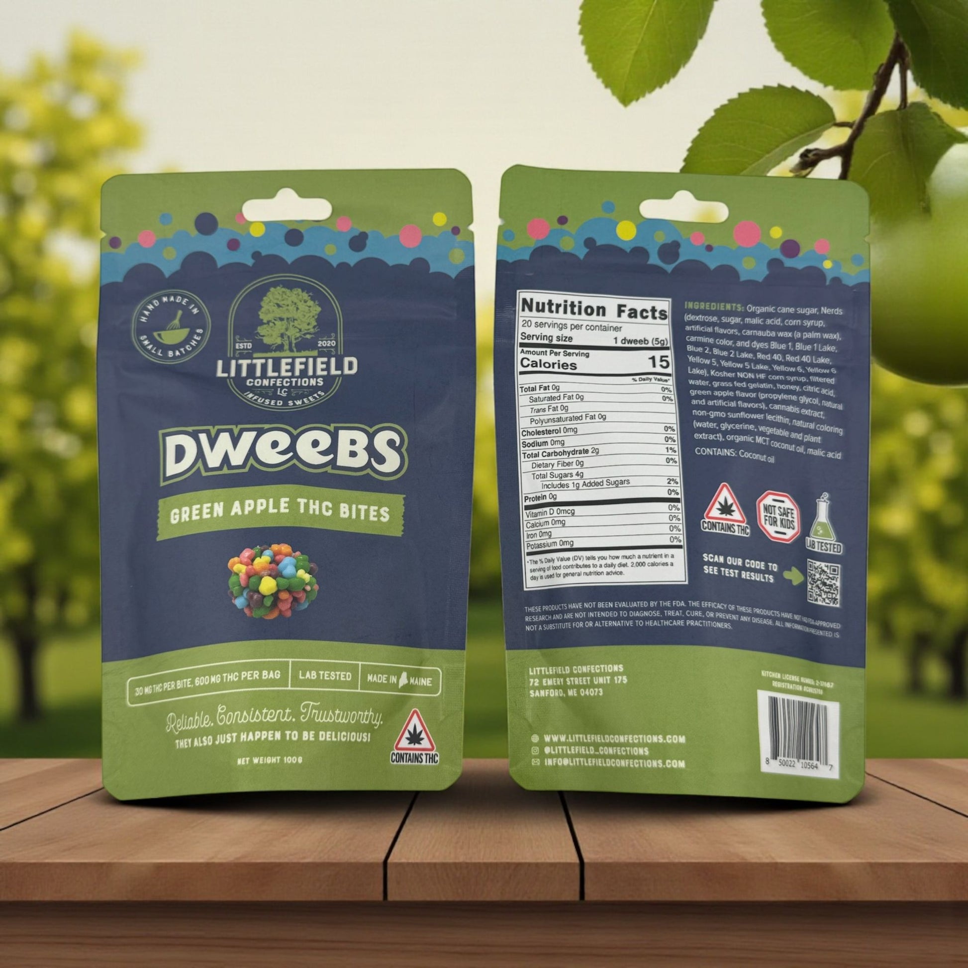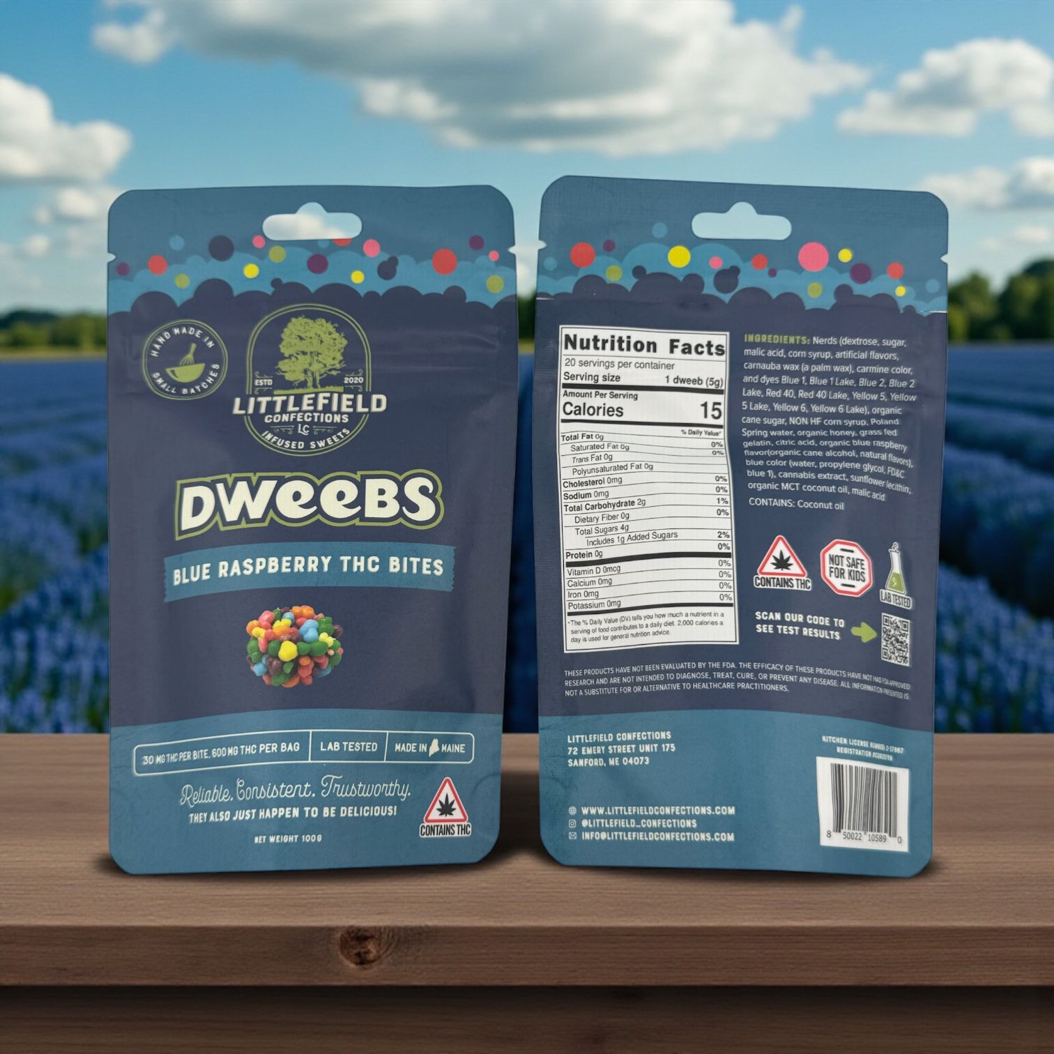 Delicious 600mg THC Dweebs with twenty 30mg pieces Littlefield Confections make it easy to enjoy the ideal dose with our specialized formula, refined for consistency and quality in every bite. Our confectioners craft each batch with your utmost satisfaction in mind, and take pride in offering Mainers delicious, top-tier THC edibles. These soft Dweeb Gummy bites are coated with crunchy Rainbow Nerds.