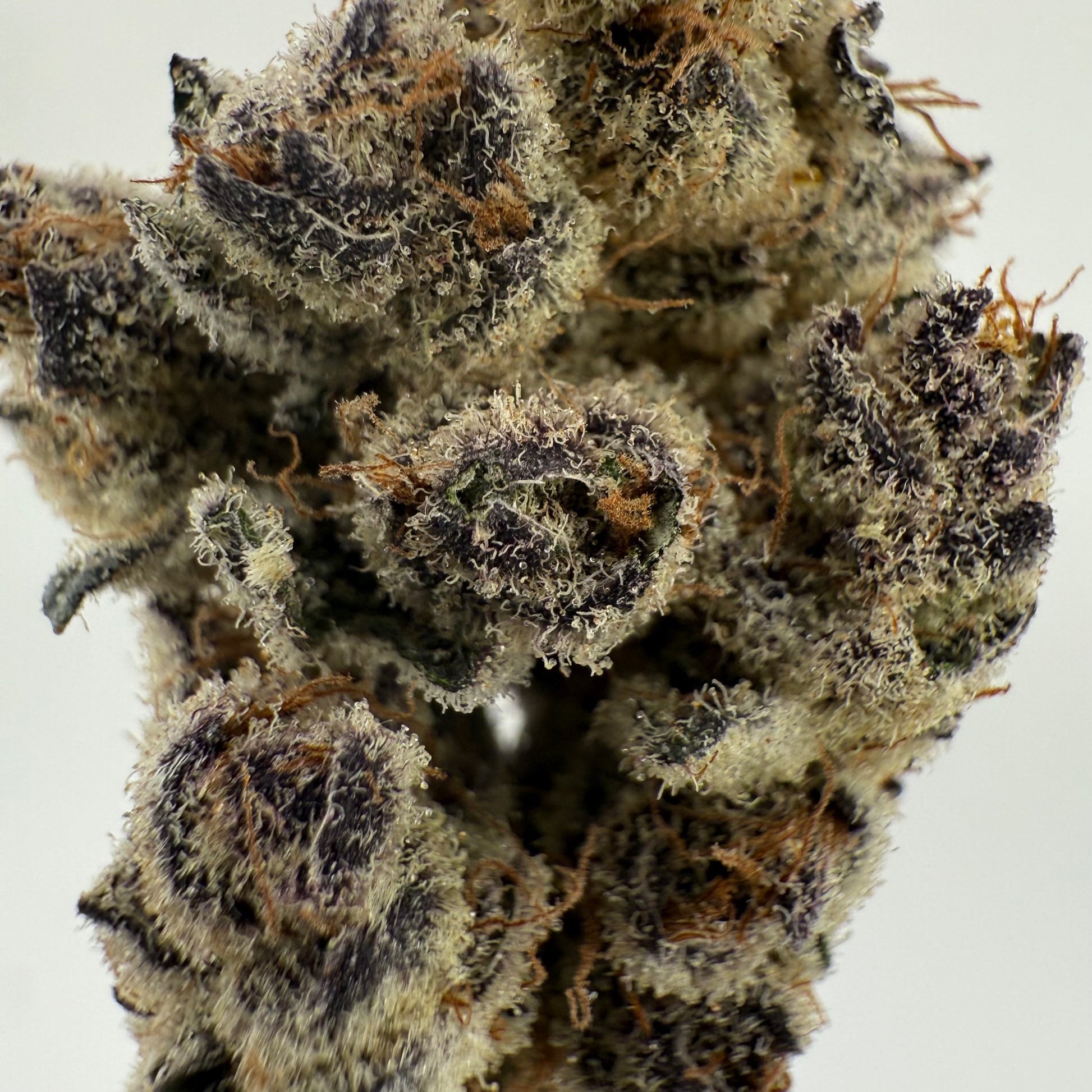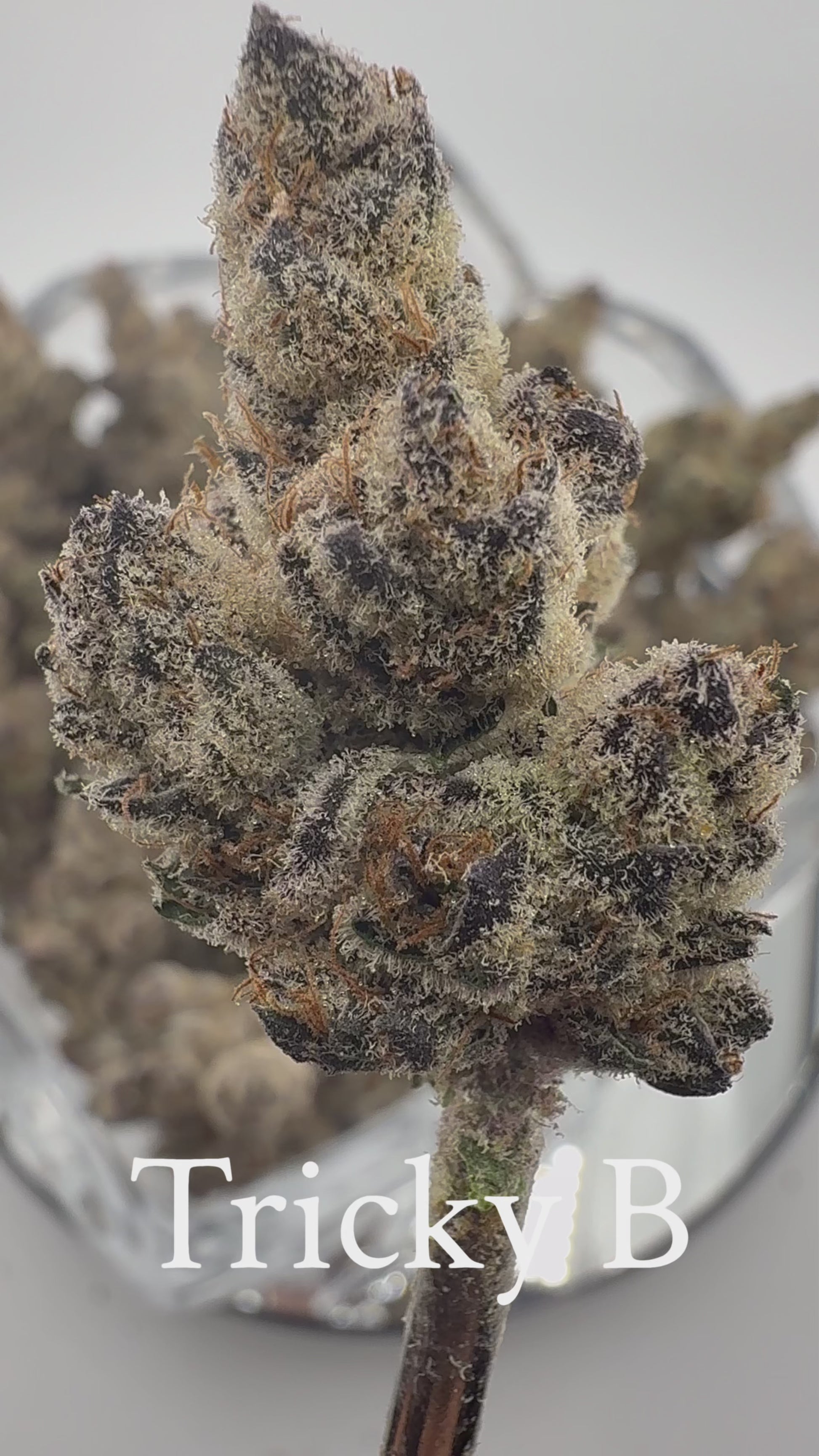Tricky B is a nuanced hybrid cultivated by Frosty Moose Farm, offering a layered profile that keeps the senses engaged from start to finish. Sweet fruit and light sugar notes intertwine with earthy spice and faint gas, creating an aroma that feels familiar yet unexpected. Dense, resin-coated buds reveal deep green tones with flashes of amber pistils and a composed aromatic depth.
